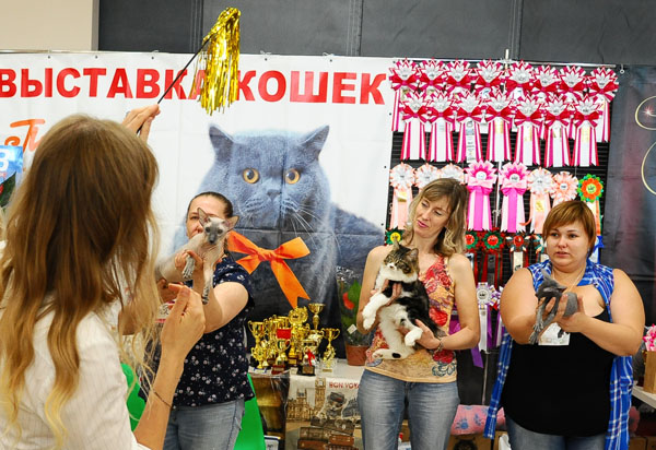 - В Новосибирске выставки проводятся дважды в год: в театре "Глобус" в День города и осенью в рамках "Зоосиба" на "Сибирской ярмарке". На этих выставках присутствуют одновременно российские и иностранные эксперты, что повышает объективность оценки. Соревнования между кошками проводятся по породе, полу, классу, возрасту, в выставке может участвовать любое животное, имеющее прививки против бешенства и лишая. Чем больше кошка соответствует стандарту породы, тем она лучше. Финальный конкурс среди 4-5 лучших кошек выставки называется "Бэст - оф - бэст" и носит, в общем - то, субъективный характер. Здесь все зависит от симпатий жюри . Выставки - это баловство людей, которые лишены обычной кошачьей рассудительности! Потому что кошкам эти показы совершенно не нужны.